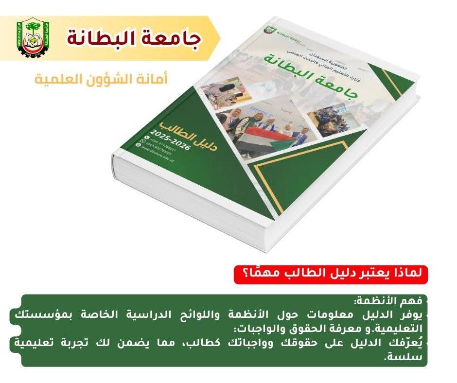 ايها الطالب مرحبا بك في سوح البطانة ….احرص على ان تقرأ دليل الجامعة