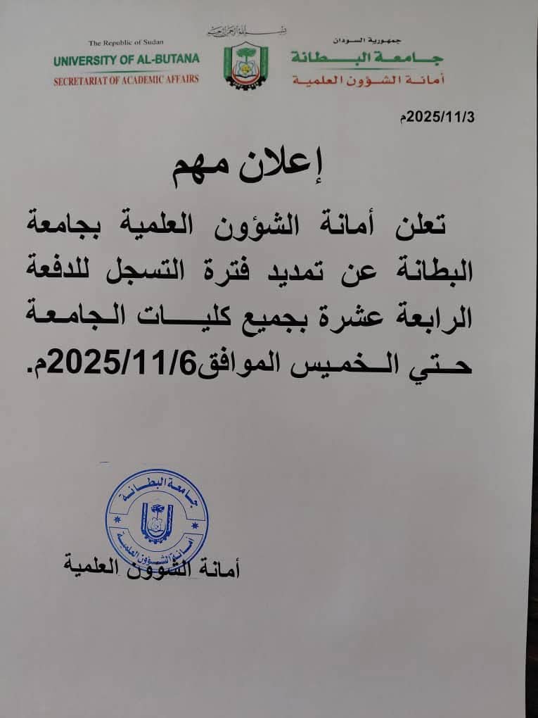 اعلان تمديد فترة التسجيل للطلاب الجدد
