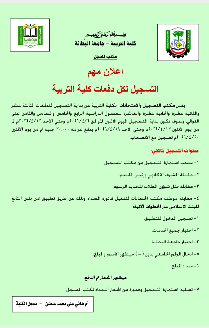 خطوات التسجيل لكل الدفعات بكلية التربية